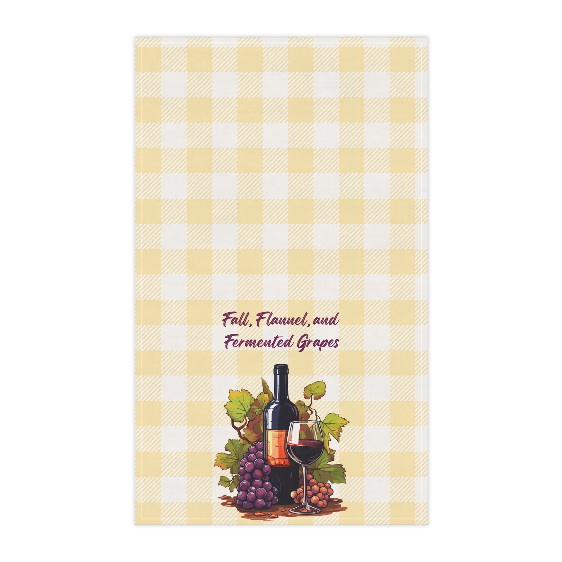 "Fall, Flannel and Fermented Grapes" Autumn Wine-Themed Tea Towels, Rustic Kitchen Decor, Festive Gift for Wine Lovers, Seasonal Home Accent, Fall Cooking Essentials