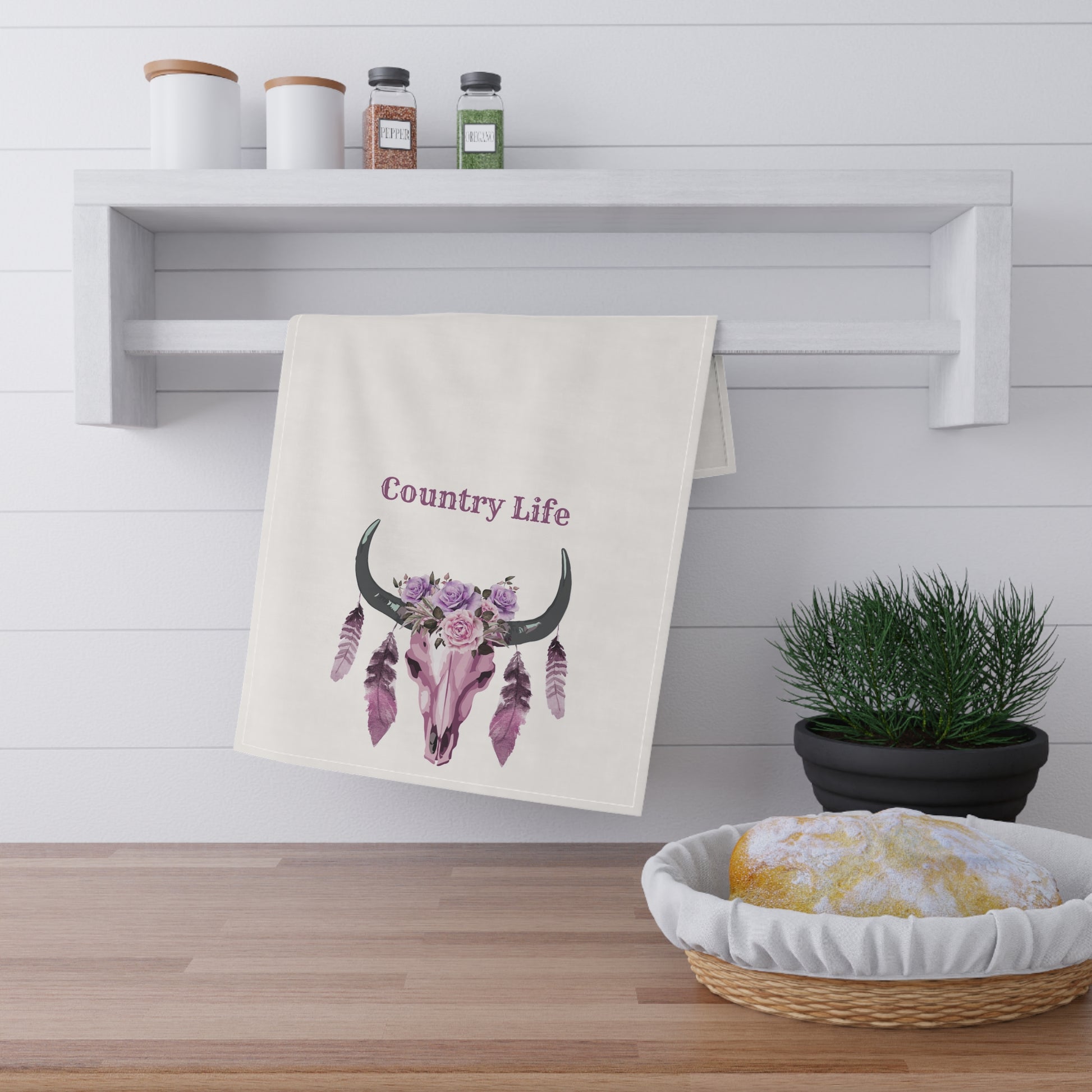 Country Life Tea Towel | Farmhouse Kitchen Decor, Rustic Home Accessory, Gift for Her, Western Style, Floral Design, housewarming