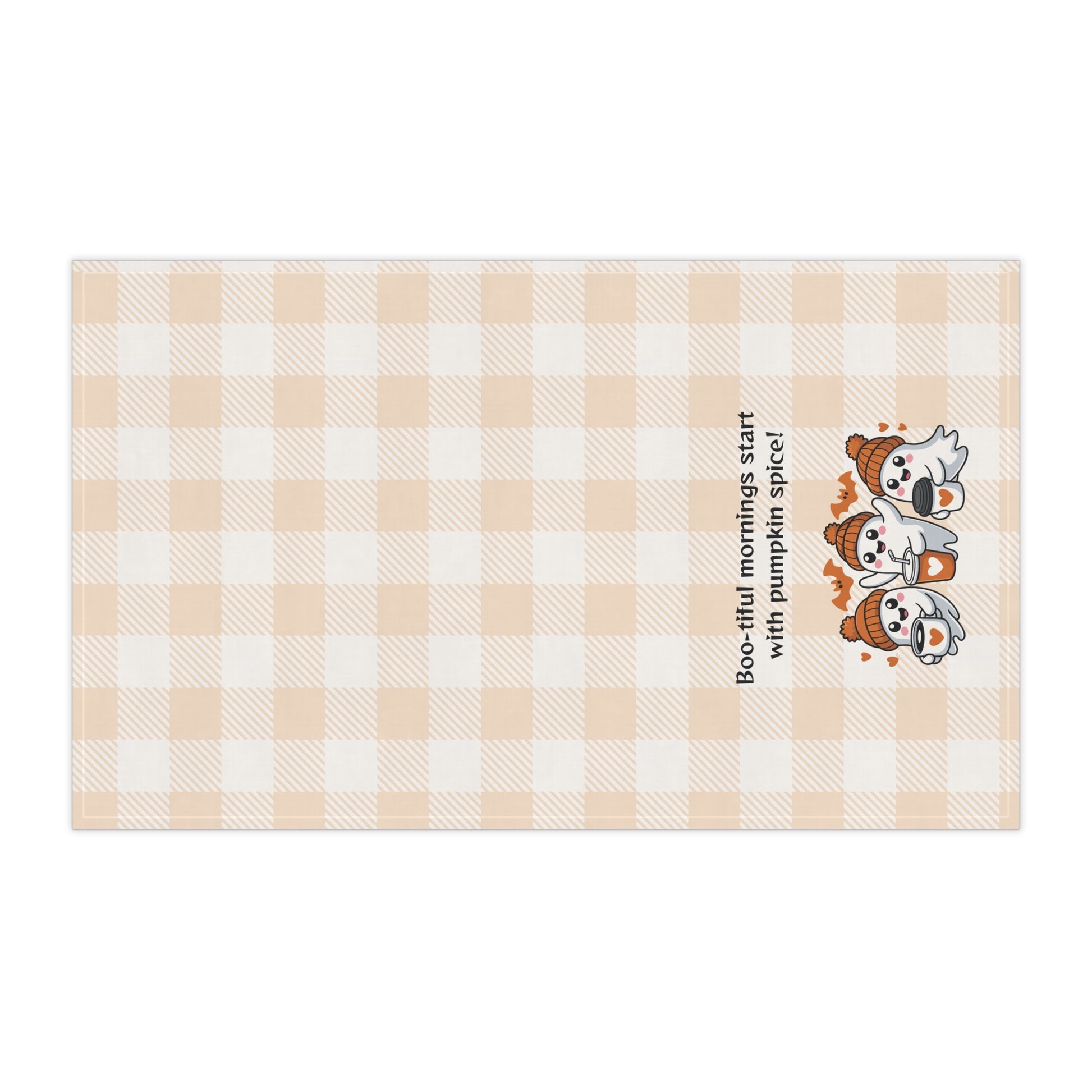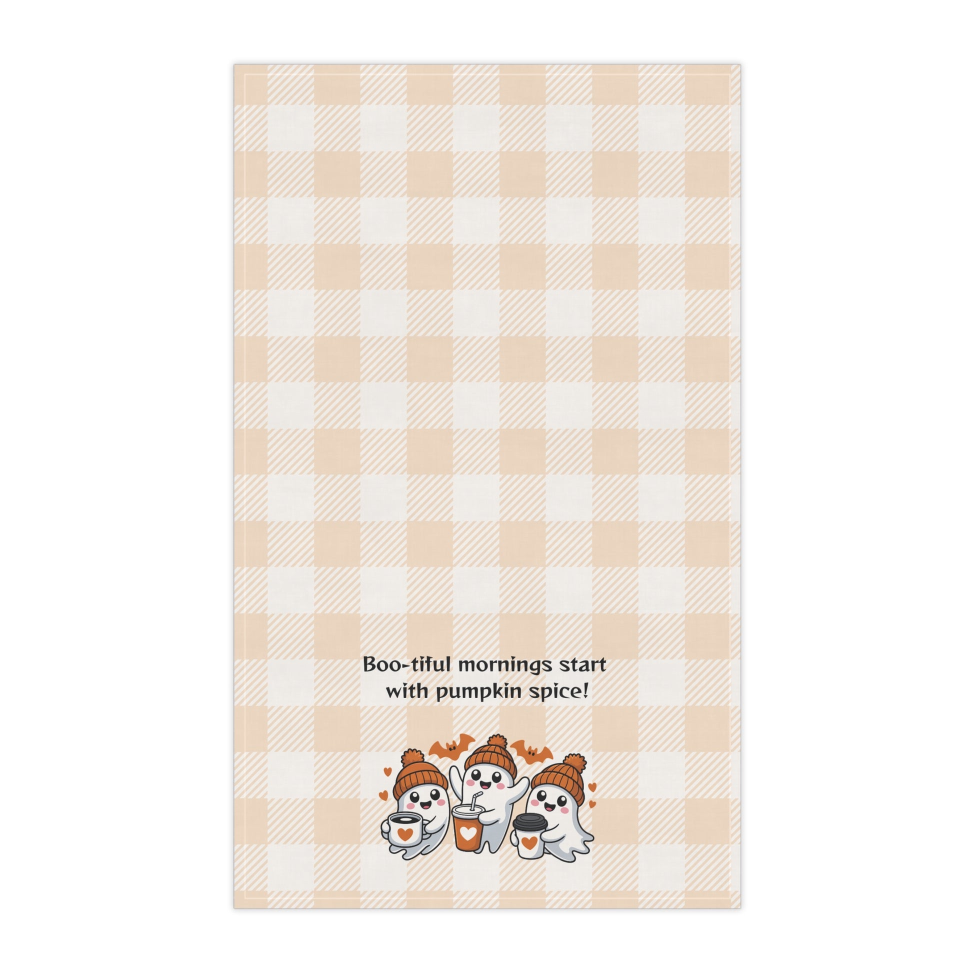 Cozy Fall Tea Towels | "Boo-tiful Mornings with Pumpkin Spice" | Perfect for Autumn, Halloween, Kitchen Decor, Gift Idea