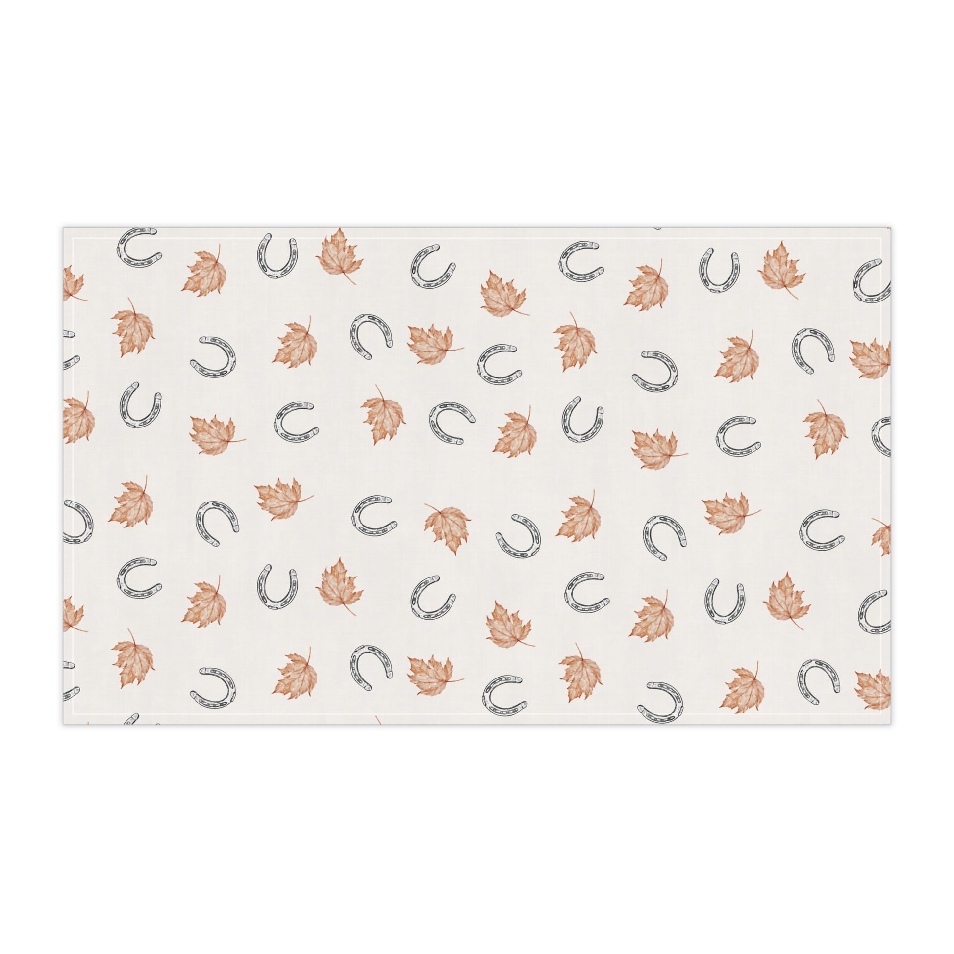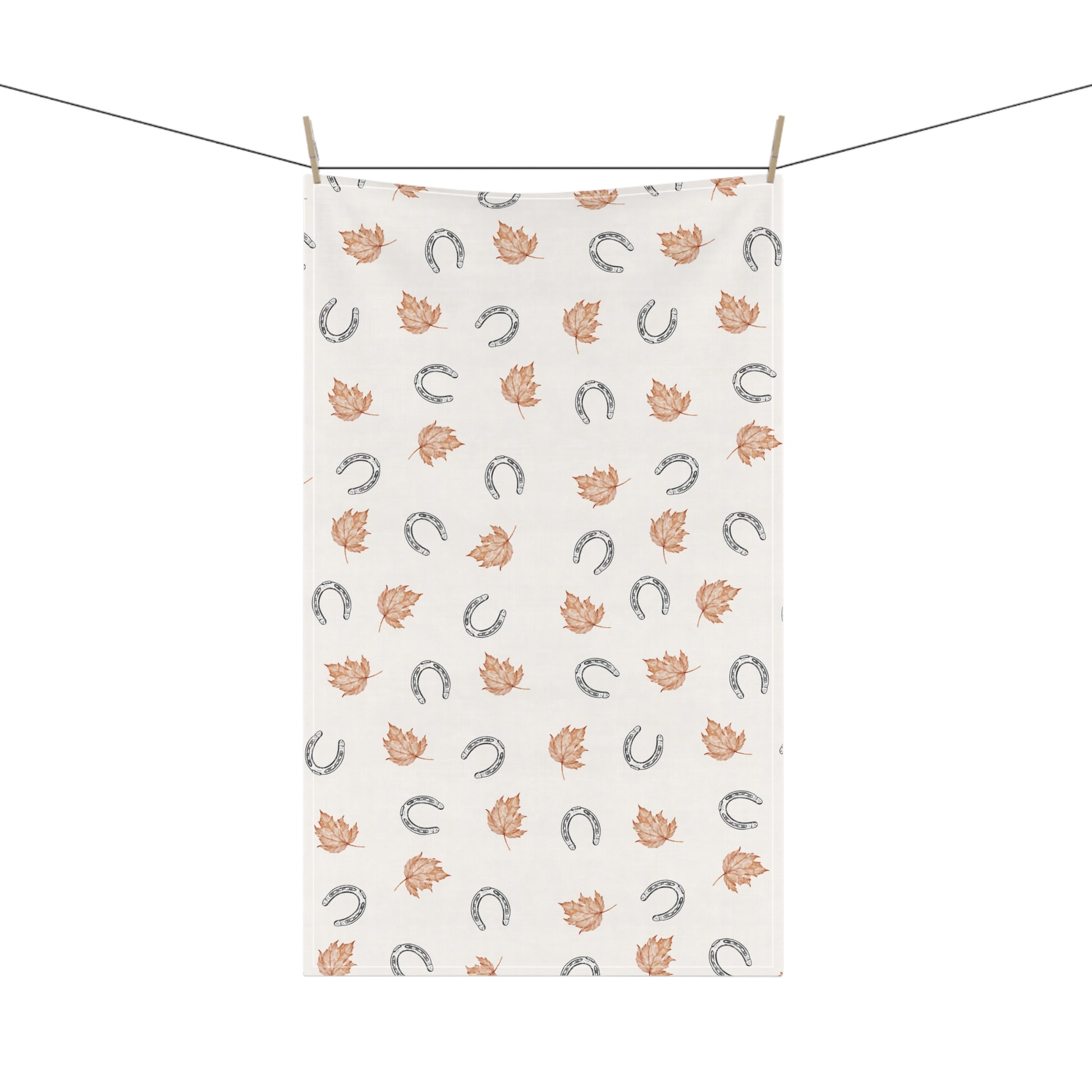 Fall leaves and horseshoes Autumn-Inspired Tea Towels, Cozy Kitchen Decor, Farmhouse Style, Gift for Homeowners, Ideal for Fall Cooking