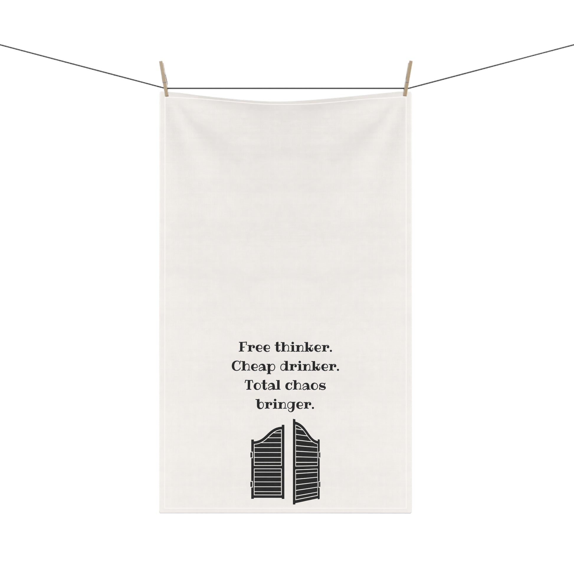 "Free Thinker, Cheap Drinker" Dish Towel. Western Kitchen and Bar Decor