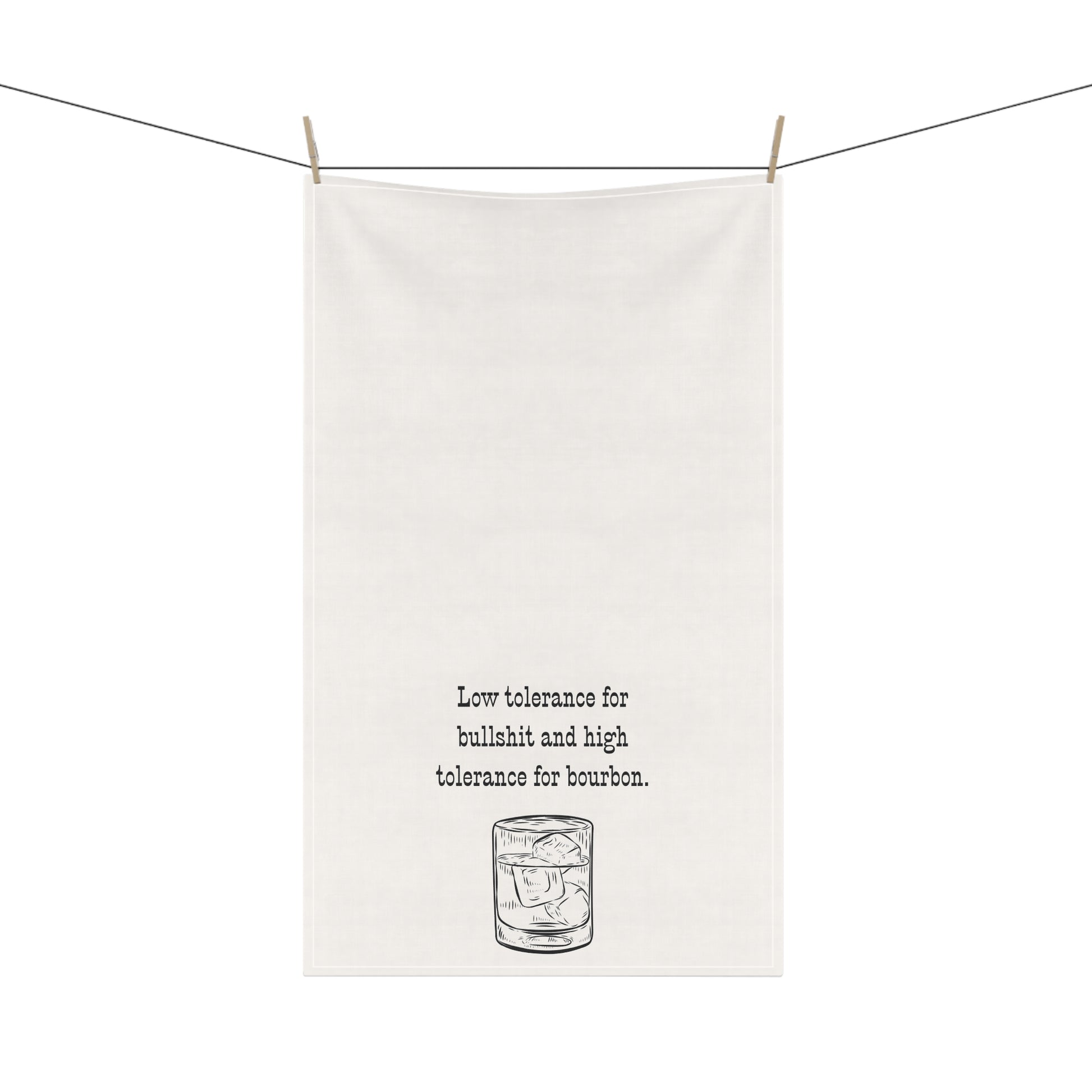Funny boozy Cotton Tea Towels with Bourbon Quote "Low tolerance for Bullshit and high tolerance for Bourbon", Fun Kitchen Decor, Housewarming Gift, Unique Bar Accessories, Perfect for Parties, [...]