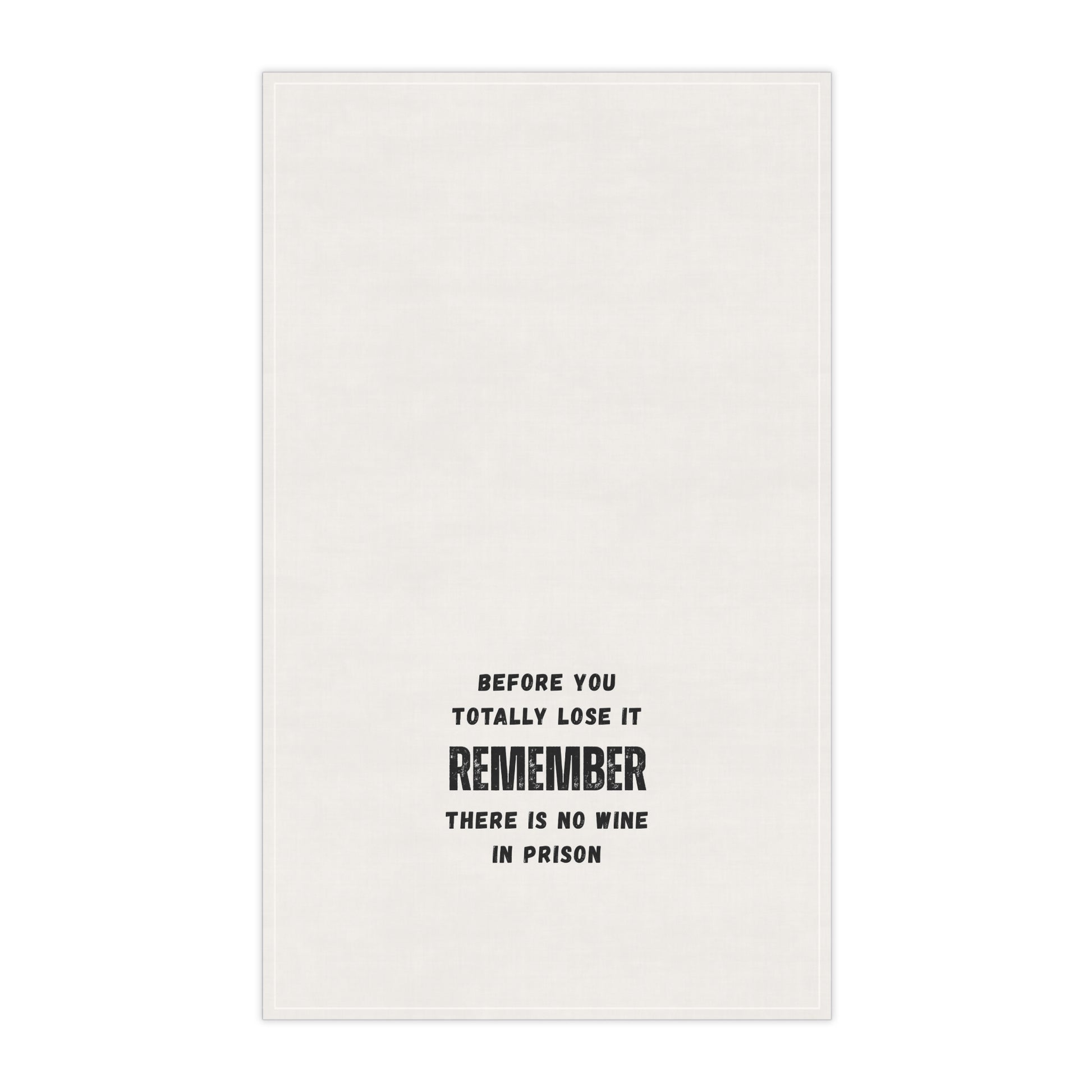 Humorous Kitchen Tea Towel – "BEFORE YOU TOTALLY LOSE IT - REMEMBER - THERE IS NO WINE IN PRISON"