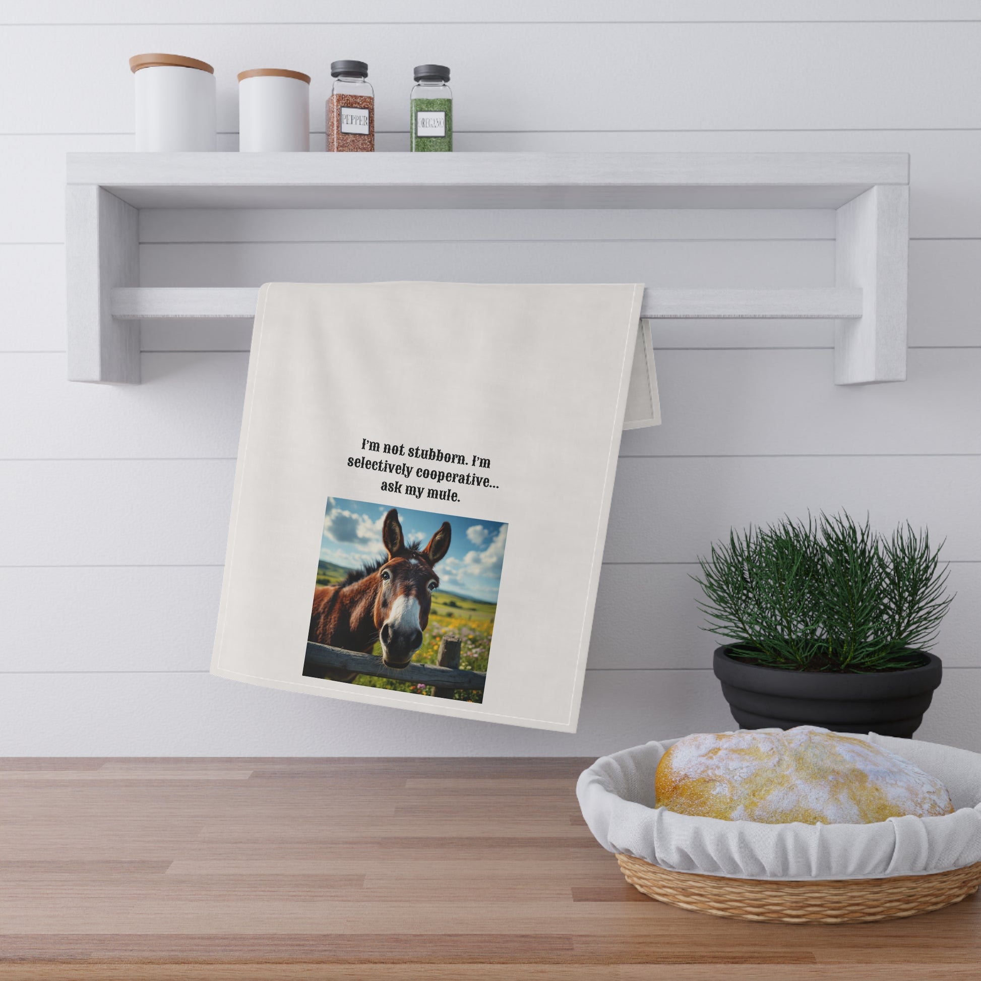 Humorous Mule themed Tea Towel, Funny Kitchen Towels, Gifts for Mule Lovers, Farmhouse Decor, Equine Humor Kitchenware