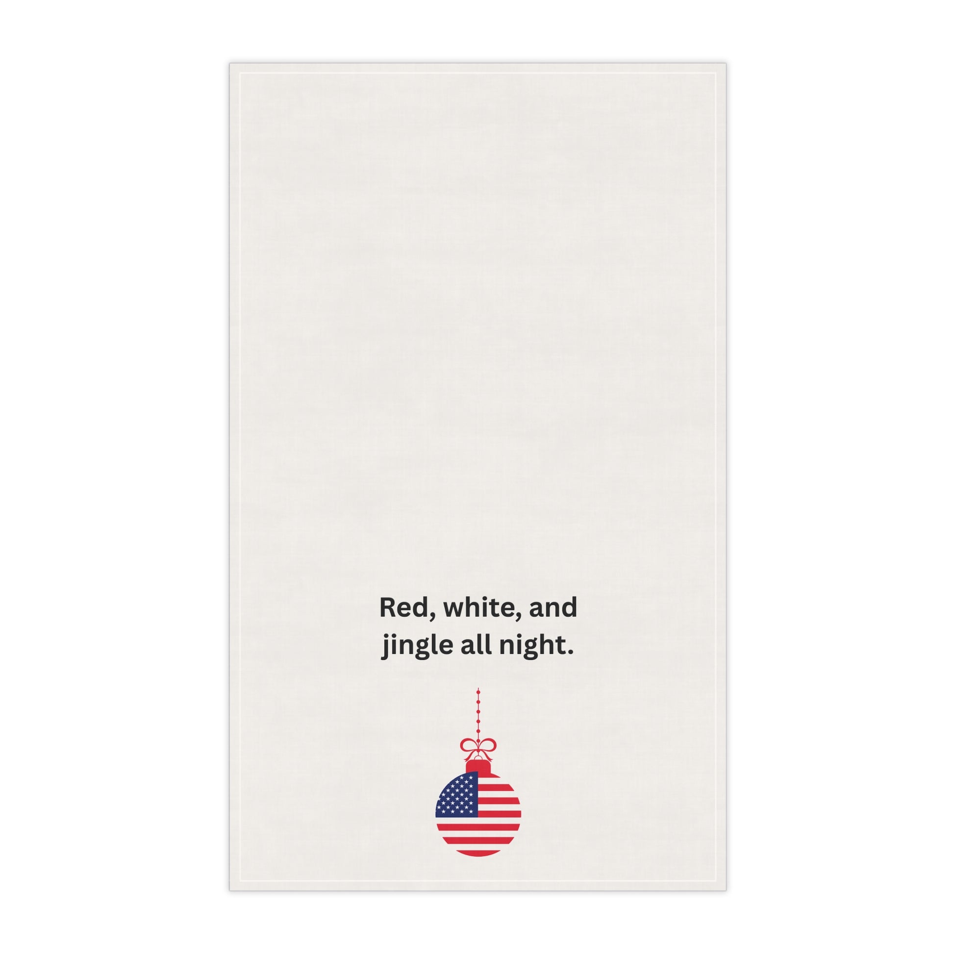 Patriotic Christmas Tea Towel — "Red, white, and jingle all night." Holiday decor, gift.