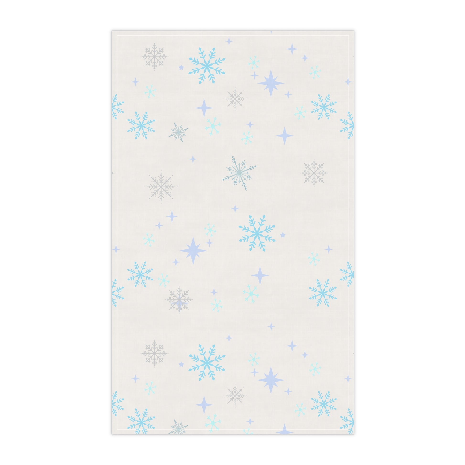 Bright, cheerful tea towel that brings a light snowfall into your kitchen. Soft white background with scattered snowflakes in icy blue, lavendar and gray tones. Lightweight and quick to drape over a bar or basket, it adds a seasonal pop without overwhelming your existing decor. Use the cotton option for everyday drying and a soft hand, or choose the polyester for a crisper feel and vibrant, fade-resistant color. Hemmed edges keep this towel looking tidy through regular use and washes.