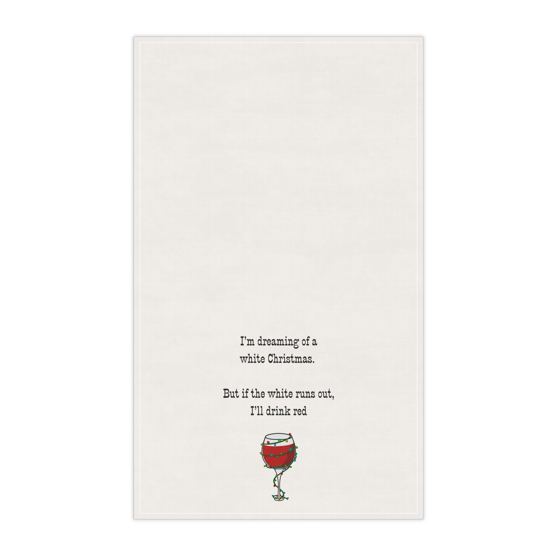 Tea Towel — “I’m Dreaming of a White Christmas. But if white runs out, I'll drink red” Wine Glass Holiday Kitchen Towel, white elephant gift, hostess gift