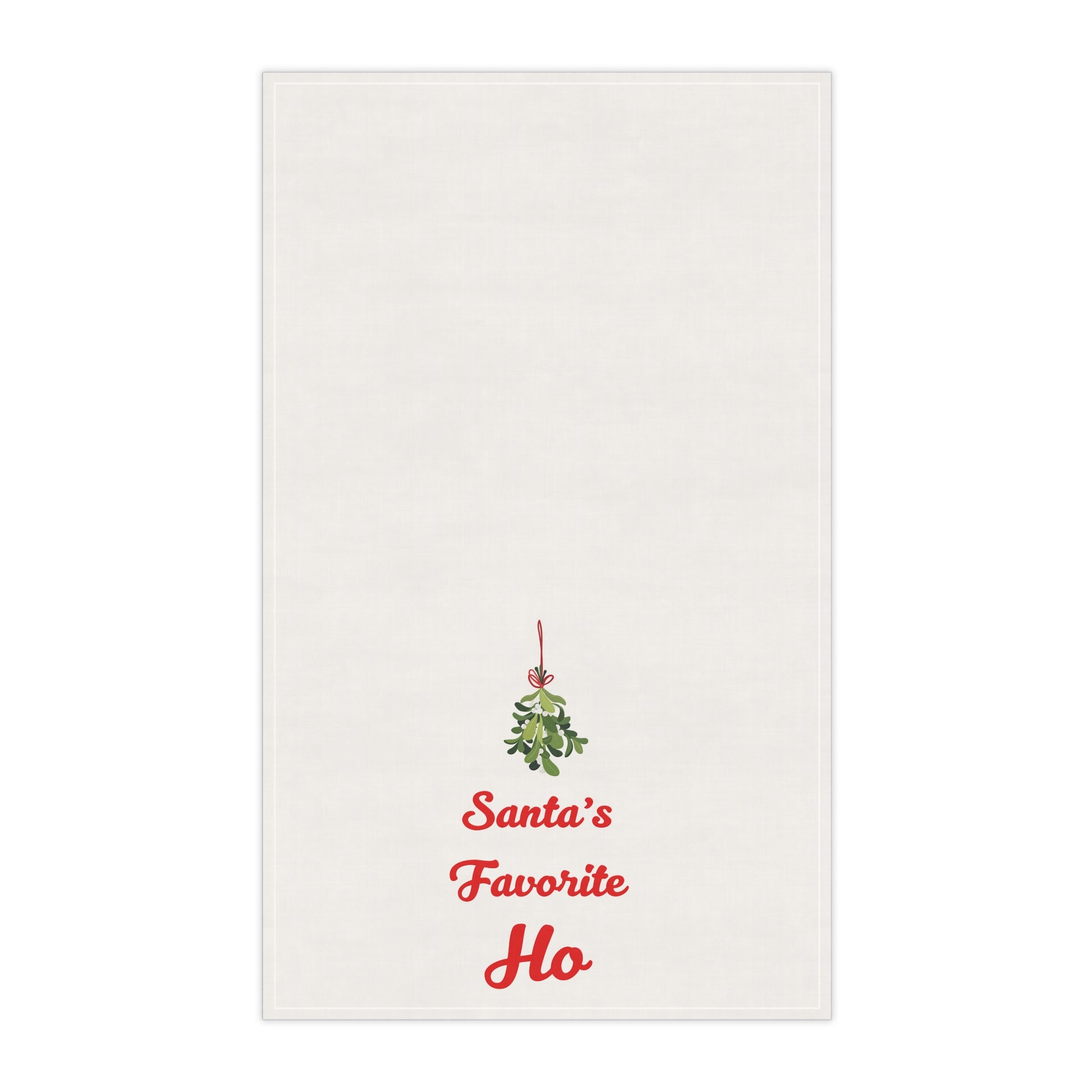Tea Towel — "Santa's Favorite Ho" Christmas Mistletoe Kitchen Towel, funny holiday gift, white elephant party gift